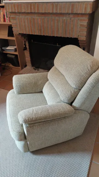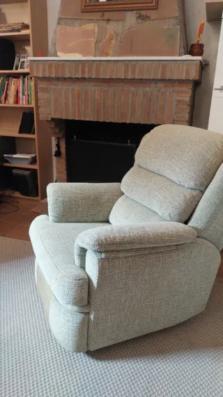 Cómodo sillón reclinable con un diseño moderno. - Tapicería de tela. - Tonos verde.