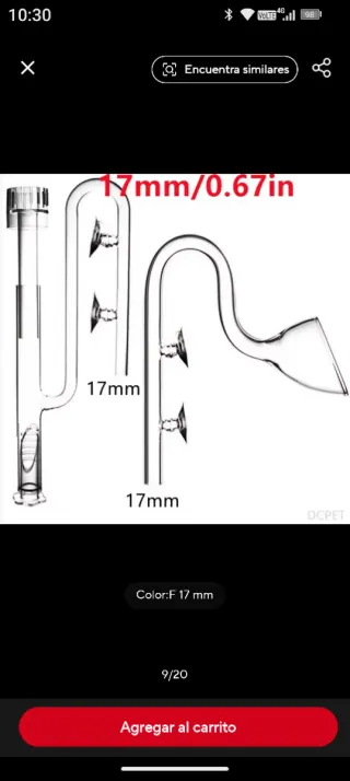 Set de boquillas de cristal para filtro de acuario. - Diámetro de 17 mm. - Incluye ventosas para sujeción. Usadas una semana, las quité por qué mi acuario es mucho más profundo y quedaba a media altura. Lo entrego con la caja y todo lo que traía.