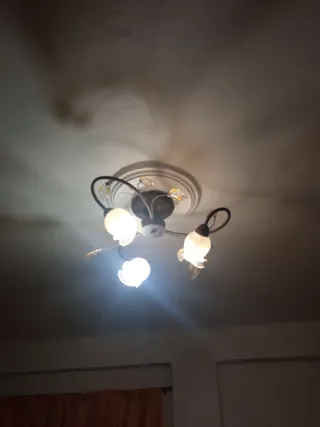 Conjunto de iluminación para el hogar, incluye una lámpara de techo y dos lámparas de mesita de noche a juego por 50€. - Lámpara de techo con diseño floral. - Dos lámparas de mesita de noche a juego.