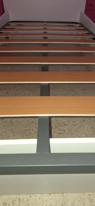Nuevo a entrenar sin usar lo pedi por equibocacion de medida Somier de láminas de madera con estructura metálica. - Medidas: 90x200 cm. - Láminas de madera. - Estructura metálica.