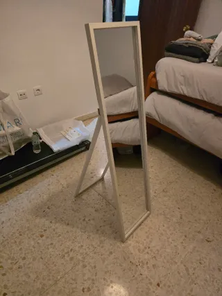 Espejo de cuerpo entero con un diseño moderno y funcional. - Estructura de madera. - Acabado en blanco.