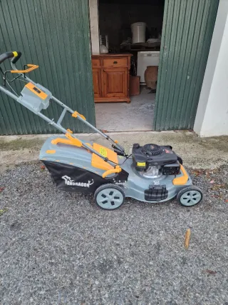 Cortacésped de gasolina Con chasis de aluminio se ha saltado un poco la pintura pero está bien la atracción de la máquina a veces va y otras veces no el ancho de cuchilla es 50cm