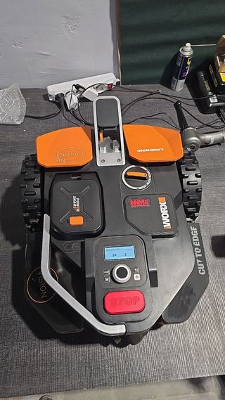 WORX Landroid Vision M800 WR208E.1 - Robot cortacésped sin cable perimetral para jardines de hasta 800 m2, robot cortacésped con IA (Wi-Fi y Bluetooth, evitación activa de obstáculos con tecnología IA, protección contra erizos) 6925387147282 Usado, El kit incluye una batería, el cable de alimentación está dañado y no hay embalaje original.