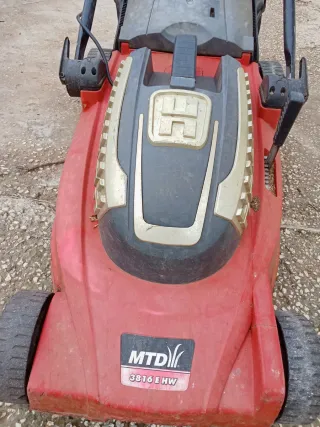 Cortacésped MTD modelo 3816 E HW, de color rojo y gris. Presenta un diseño robusto y práctico. - Marca: MTD - Modelo: 3816 E HW - Color: Rojo y gris -No enciende, es eléctrico y vale para piezas o para arreglar si deseas