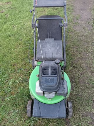 Está para reparar o aprobechar piezas. Motor completo, (biela rota), chasis y cuchilla mal. El resto está bien: Tracción, Ruedas, manillar, cables etc. No tiene cesto. 619377211