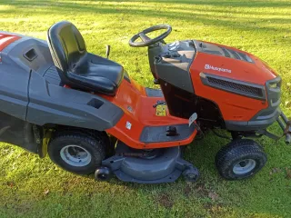 Tractor cortacésped Husqvarna tc342t con motor kawasaki fr691 de 23 caballos con filtro aceite y bomba combustible. Hidrostático. Plataforma de Corte de 110 cm con 4 cuchillas. Mantenimientos al día. Cesto de gran capacidad