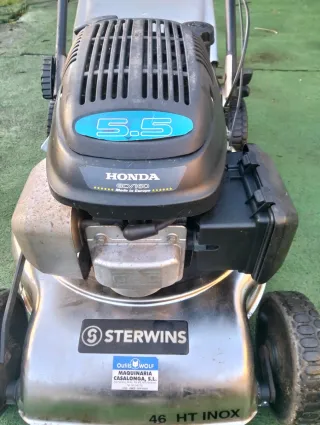Cortacésped Sterwins con motor Honda GCV160, funcionando, chasis inox, tal cual las fotos. - Modelo: 46 HT INOX. - Potencia: 5.5.