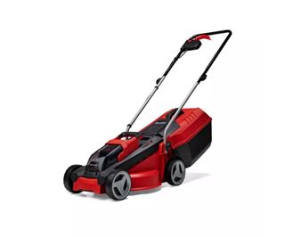 Cortacésped Einhell de batería, diseñado para facilitar el cuidado de tu jardín. Su estructura es robusta y su manejo intuitivo. - Color rojo y negro. - Ruedas para fácil desplazamiento. - Cesta recolectora de césped. - Se da con batería y cargador
