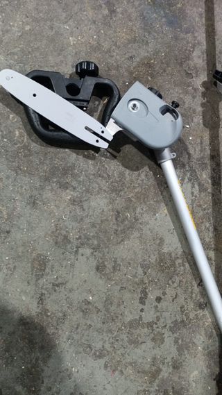 Alquiler de multiherramienta para poda en buen estado. Incluye cabezal de cortasetos, motosierra de altura y cabezal de corte. - Perfecta para trabajos de jardinería. - Cabezales en buen estado. - Fácil de usar y mantener.