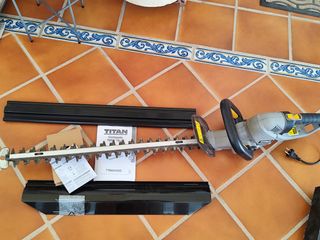 Cortasetos eléctrico Titan de 70cm y 700W, prácticamente nuevo. Incluye manual de instrucciones. - Perfecto estado. - Listo para usar. - Incluye caja original. Solo un uso, me harté de cortar pinos y los arranque.