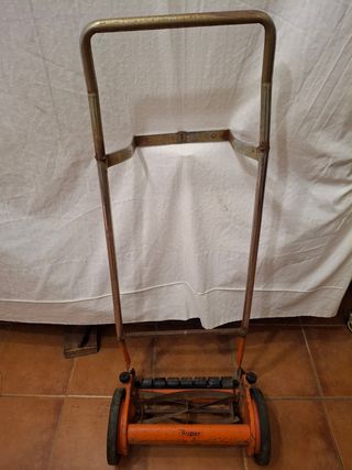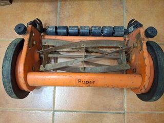 Cortacésped manual antiguo de la marca Super. Se encuentra en buen estado, aunque muestra señales de uso. - Máquina de cortar césped de carrete. - Estructura robusta de color naranja. Ancho de corte 40 cm No envio, sólo venta en persona Motosierra. Cortasetos. BELLOTA. Sthil. ECHO. Husquarna. Mcculloch. Jardín. Jardinero. Jardinería. Césped
