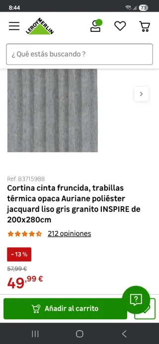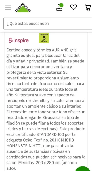Cortina gris de poliéster térmica, en invierno guarda el calor y en verano preserva el fresco del aire acondicionado. Me la regalaron pero la quería en color beige. No encaja con mi decoración. PVP 49.99€