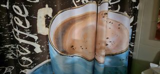 Visillos y friso de cocina con diseño de tazas