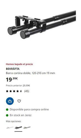 Barras para cortinas de Ikea en buen estado con sus soportes. El modelo está descatalogado ya que IKEA ya no vende este color pero se parece mucho al modelo BEKRÄFTA. No hago envíos. Adjunto una foto del modelo nombrado.