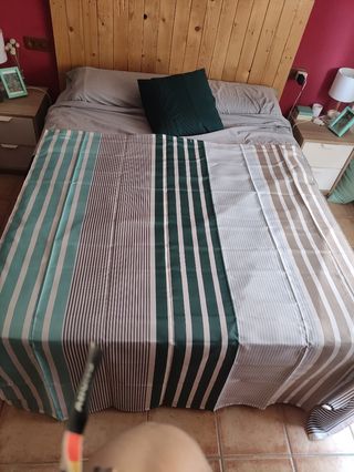 Muy buen estado. Medidas, ancho 120 cm x alto 160 cm. Color blanco y a rayas verdes azuladas. Vendo por cambio de decoración.