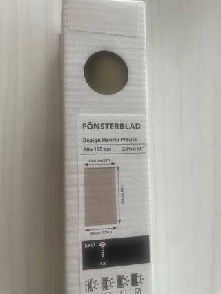 Nueva en caja precintada, sin usar. Preciosa cortina Fönsterblad de IKEA, en color beige claro y de tela suave. Es perfecta para dar un toque de calidez a cualquier espacio. - Medidas: 60 x 155 cm. - Diseño Henrik Pretz. - Incluye 4 tornillos para su instalación.