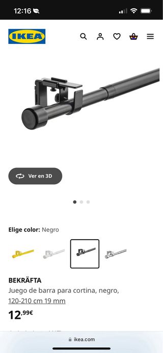 Barra para cortina extensible BEKRÄFTA de Ikea, color negro. Tengo dos. 5€ cada una. - Mide entre 120 y 210 cm.