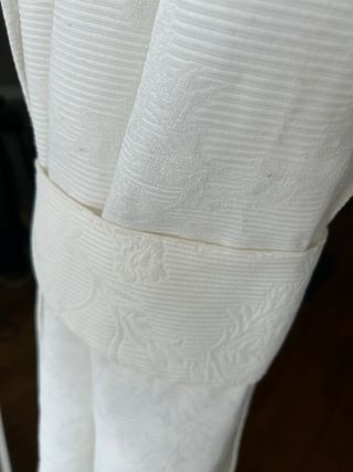 Vendo pack de dos cortinas blancas de Ikea, de tela gruesa y con detalle de bordado de flores. Es perfecta para dar un toque elegante y sofisticado a cualquier espacio. Se puede utilizar como dos cortinas para un ventanal o como caída con un visillo detrás, ya que lleva unas abrazaderas con la tela a juego. - El precio de 18€ incluye las dos cortinas y las dos abrazaderas Tamaño de la cortina: - Alto 240 cm (lleva 15 cm de orilla que se le podría añadir) - Ancho 140 cm Tamaño abrazaderas 60 cm largo