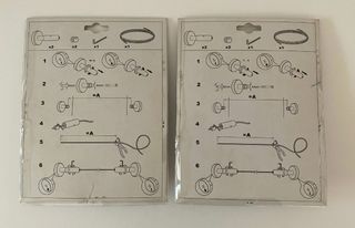 Vendo dos soportes para cortinas FREKVENS 1 de IKEA, nuevos y sin usar. Están en sus embalajes originales. - Cada kit incluye 5 metros de cable de acero inoxidable. - Ideales para colgar cortinas ligeras o elementos decorativos.