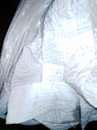 Preciosa pareja de cortinas blancas con detalles plateados. Son de tela aterciopelada, con un diseño elegante y sofisticado. - Diseño con rayas plateadas reflectantes. - Ideales para dar un toque de luminosidad a cualquier espacio.