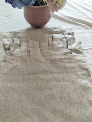 Cortina de lino de Zara Home en color beige. Perfecta para dar un toque natural a tu hogar. - Diseño con trabillas para colgar. medidas 140 ancho por 270 largo