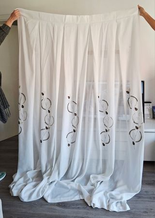 Preciosa pareja de cortinas blancas, perfectas para dar un toque de luminosidad a cualquier habitación. Son de un tejido ligero y translúcido. Última foto es el precio de tienda (zara home) - Cada una mide 135cm horizontal y 250cm verticalmente (alto ) - Color blanco roto. - Material ligero y suave.