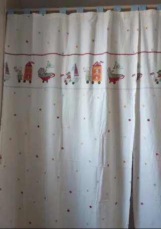 Hechas a mano❗ Conjunto de dos cortinas infantiles idénticas, perfectas para una habitación. Se debe tener en cuenta que la medida de largo es posible alargarlo unos 30 cm mas si asi se desea❗ Medidas: 120cm de ancho y 214 cm de largo 📏 En perfecto estado 🛍️ Si tiene cualquier duda no dude en realizarla ✍🏻 Respuesta y envío rapido 24/48h 🚚