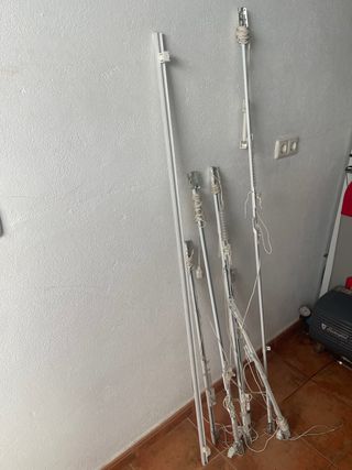 Se venden 7 rieles para cortinas. Están en buen estado, aunque presentan algunas marcas de uso. - Ideales para colgar cortinas. - Fáciles de instalar. - 1 de 164 cms, 1 de 155 cms, 2 de 118 cms .- 2 de 70 cms y 1 de 90 cms .- Se venden todas juntas en lote .- muy bajo precio