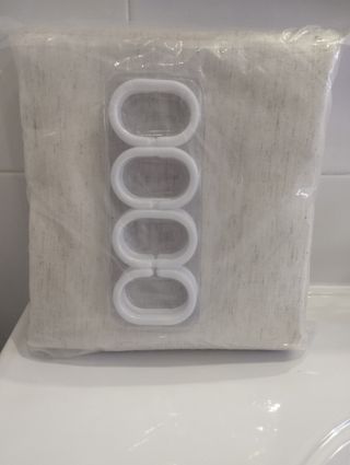 cortina con anillas color crudo utilizadas pero con buen uso
