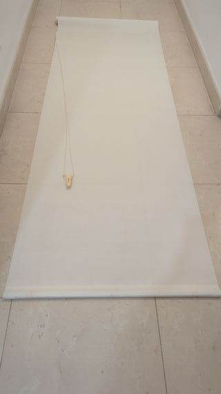 Pantalla enrollable para ventana. Es de color blanco y está hecha de papel.