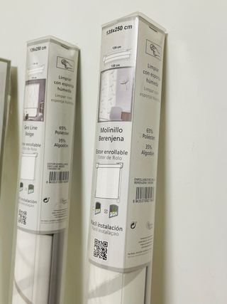 Se venden tres estores en color blanco. Las medidas exactas se pueden ver en las fotos. - Medidas: 135/139 cm de ancho x 235 cm de alto. - Fácil instalación. Leroy merlin
