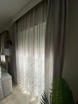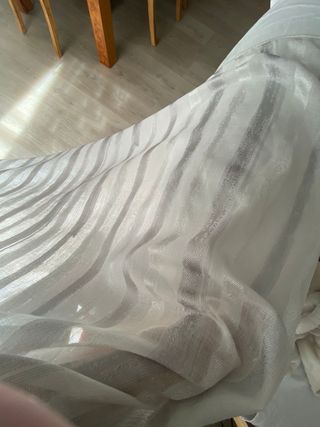 Visillos para dos ventanas/balcones Conjunto 1: 2 tramos de 1,45x2,70 Conjunto 2: 2 tramos de 1,77x2,70 Ojo! se vende el visillo y NO las caidas grises