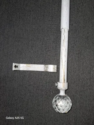Medida min 110cm-220cm max(2 barras).Barra para cortina con un diseño elegante y un remate decorativo. - Barra metálica con acabado desgastado. - Incluye soporte para pared. - Remate final en forma de esfera de cristal facetado.