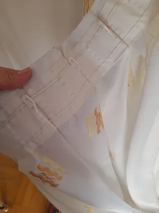 Cortina de lino con un diseño sutil y elegante. - Tejido ligero y transpirable. - Detalles bordados en tonos amarillos y ocres. - Ideal para añadir un toque de color y textura a cualquier estancia.