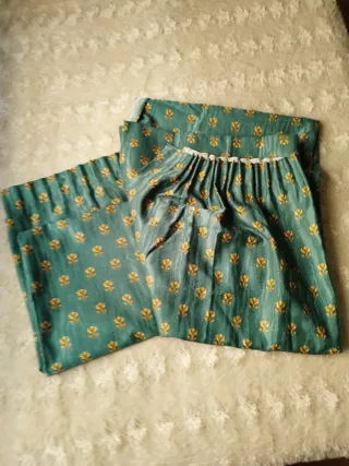 todo esta realizado a mano con un raso muy bueno la colcha y los cojines los regalo y las cortinas blancas no entran en el precio todo lo demas si.... si necesitas medidas o preguntas me escribis por wasa mejor679519037.....me da pena quitarlas pero no me convinan con lo nuevo