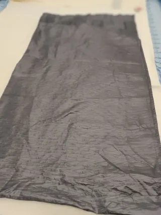Cortina fingiendo arrugado raso gris plata. 2,41 largo 136 ancho nueva.