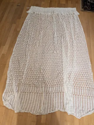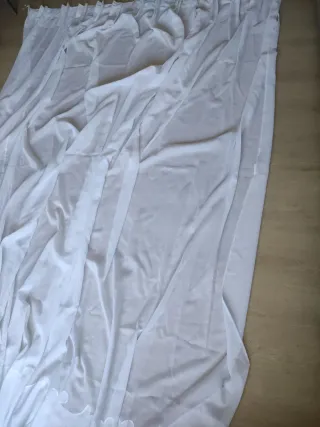 La vendo porque no la necesito y me da pena tirarla. Si la necesitas, escríbeme. Cortina de ducha en color blanco, con medidas de 1.80 x 1.80 metros. - Material de poliéster. - Ojales para colgar.