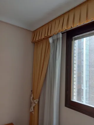 Cortina opaca con forro térmico para que no entre calor ni frío.