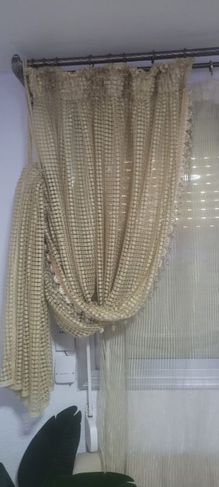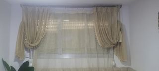 2 cortinas por 10€ 151x178cm estan bastante usadas y con los laterales desilachados pero realizan su funcion tiene todo lo necesitario para instalarlas color beige