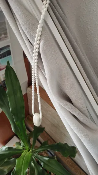 Estor de color beige ( CRUDITO) 20% lino 80% poliéster,sistema de subida y bajada con cadena , se vende completa ( con barra) 1.50cm de ancho × 295 cm largo, van arrugaditas abajo, tambien se pueden cortar Compradas en Leroy pongo fotos del Leroy porque las mías no tienen mucha luz En perfecto estado
