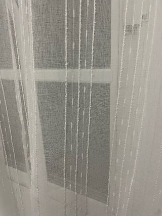 Conjunto de telas para cortinas, incluyendo visillos y cortinas principales. El tejido es de alta calidad y presenta un diseño sutil. - Textura fina y elegante. - Ideal para crear ambiente en cualquier estancia. 5 euros el metro 6 m de ancho x 3 de alto visillo y cortina 6 y medio de ancho x 3 de alto la cortina los 6 m cobro el medio no