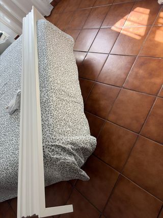 Se vende dormitorio de matrimonio completo. PRECIO A NEGOCIAR - Mesitas y canapé de madera. - Canapé abatible para almacenamiento de madera. - Cortina y soporte de cortina Cama de 150 Las lámparas, colchas, cojines y el jarrón no están incluidos
