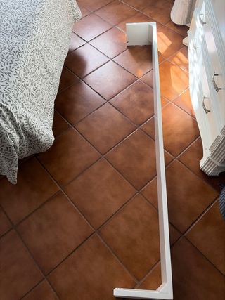Dos barras para cortina, en color blanco y material plástico. Son perfectas para colgar cortinas ligeras. - Miden aproximadamente 1 metro de largo cada una. - Se encuentran en buen estado.