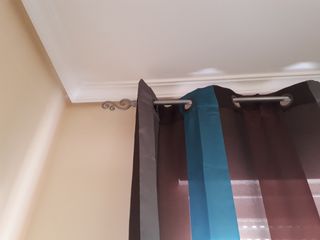 Cortina doble.Marron, azul y gris. Las medidas son de una cortina. Barra opcional. Tengo cojines a juego.