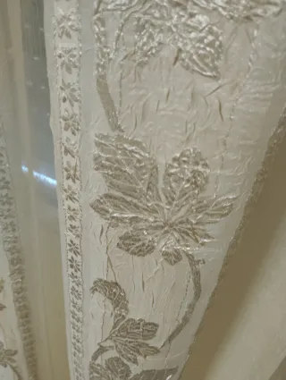 Elegantes cortinas de tela con un diseño sutil. - Diseño con motivos florales. - Textura con relieve.