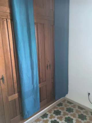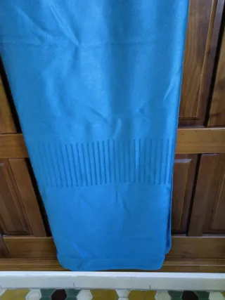 Cortina azul petróleo. Dos hojas. Años 70. Medidas: - 158 cm de ancho. - 265 cm de alto. Presenta algún enganche. Es de color azul petróleo. Muy bonita. Muchas tela para proyectos DIY.