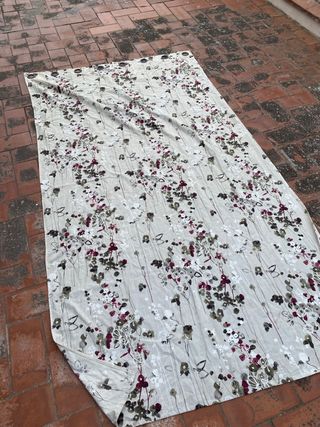 2 Cortinas estampada con motivo floral abstracto. Enganche de arandelas. Ancho 1,35 Alto 2,45 Cada una.