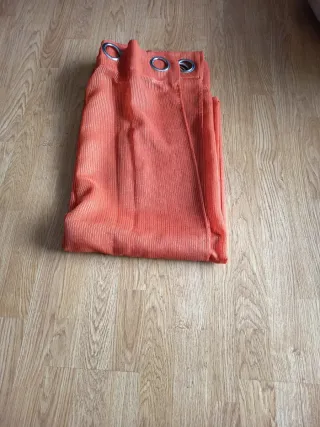 4 Cortinas de color naranja con un diseño de rayas verticales sutiles. Son ideales para añadir un toque de color a cualquier habitación. - Medidas: 140 cm de ancho por 235 cm de alto. - Con ojales metálicos para colgar fácilmente.