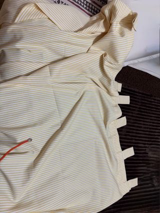 Cortina de tela a rayas blancas y amarillas