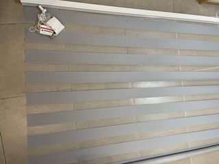 Cortina store nueva, lista para instalar. - Diseño moderno con franjas alternas. - Combina tonos beige y gris para un estilo versátil. - Fabricada con materiales de calidad para mayor durabilidad.